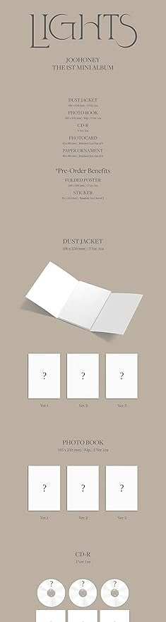 MONSTA X JOOHONEY LIGHTS 1st Solo Mini Album Standard Version. 1 CD+84p Photo Book+1p Photo Card+2ea Paper Ornament+Tracking Sealed